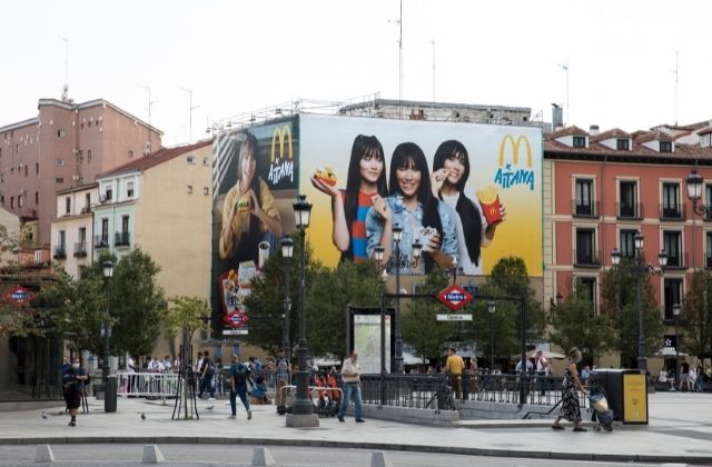 Y para ampliar la difusión de la campaña Menú Aitana de McDonald’s, el pasado 13 de septiembre, en pleno centro de Madrid, se instaló una lona doble en la Plaza de Isabel II. Además de que también ha estado presente en gran número de marquesinas en distintos puntos del territorio nacional, con imágenes con una marcada estética de videoclip musical y una iconografía creada especialmente para esta colaboración, que muestran a la artista en su máximo esplendor.