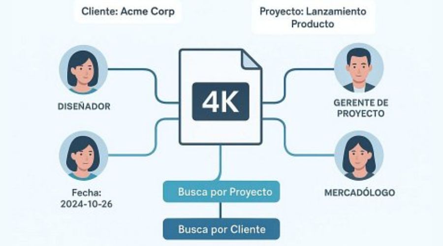 Este planteamiento gana fuerza con el uso de metadatos. En vez de obligar a los usuarios a recorrer laberintos de carpetas, los sistemas modernos permiten etiquetar los archivos (por cliente, proyecto, fecha, tipo de activo). Así, un mismo archivo se puede localizar desde distintos enfoques sin tener que copiarlo en varias carpetas físicas.