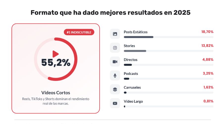 Uno de los aprendizajes más significativos «es la consolidación del vídeo corto como pilar estratégico», como se ha explicado en el primer párrafo de la noticia. Con un 55,28% de eficacia reportada por las marcas y un 84,55% de profesionales que prevén su crecimiento, este formato deja de ser una tendencia emergente y se convierte en una infraestructura fundamental para ordenar los recursos, contenidos y calendarios de las marcas.