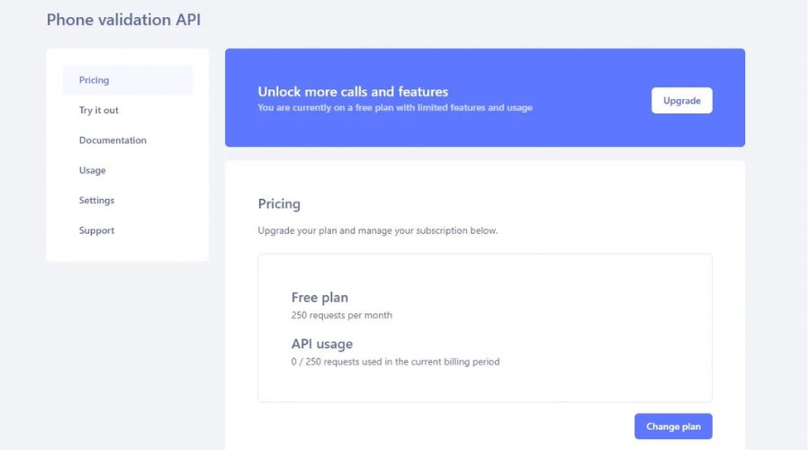 Si tu proyecto está en fase inicial o maneja volúmenes bajos, Numverify te permite validar hasta 100 números mensualmente sin coste, cubriendo 232 países.