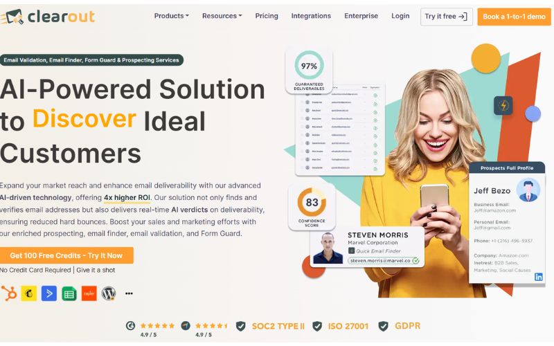 | Clearout | Verificación enfocada en deliverability | Scoring de riesgo, catch-all, verificación por lotes | Outreach y campañas frías | 4.6/5 |