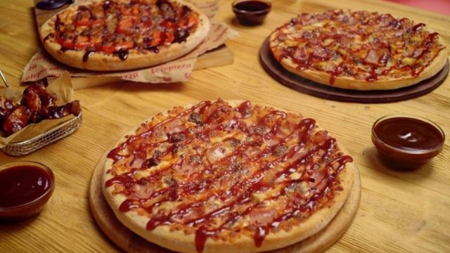 - Y la Telepizza Smokey BBQ, la más gamberra de las tres; su sabor ahumado te hará viajar lejos al degustar su doble vacuno, cebolla caramelizada, rodajas de tomate y el aderezo de la salsa Smokey BBQ, hecha con Bourbon.