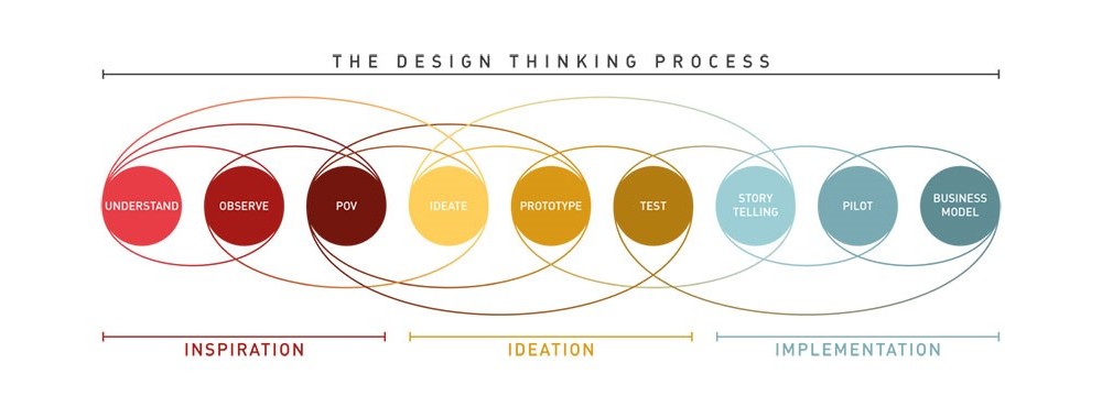 Una vez tenemos el problema definido e identificado, debemos solucionarlo. A través de la ideación (brainstorming) y prototipado (basado en productos mínimos viables semejantes al agile) llegamos a la fase final de experimentación para concluir con la producción de ese producto final requerido que resuelve el problema inicialmente propuesto. Utilizando esta estrategia se logra diversas alternativas y descubrimos nuevos insights de manera iterativa e interactiva.