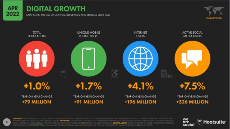 Los usuarios de redes sociales también aumentaron en más de 30 millones desde principios de 2022, llegando a la cifra de más de 4.650 millones de cuentas en activas en las redes sociales a nivel mundial, como prosigue la nota de prensa sobre la actualización del Digital 2022.