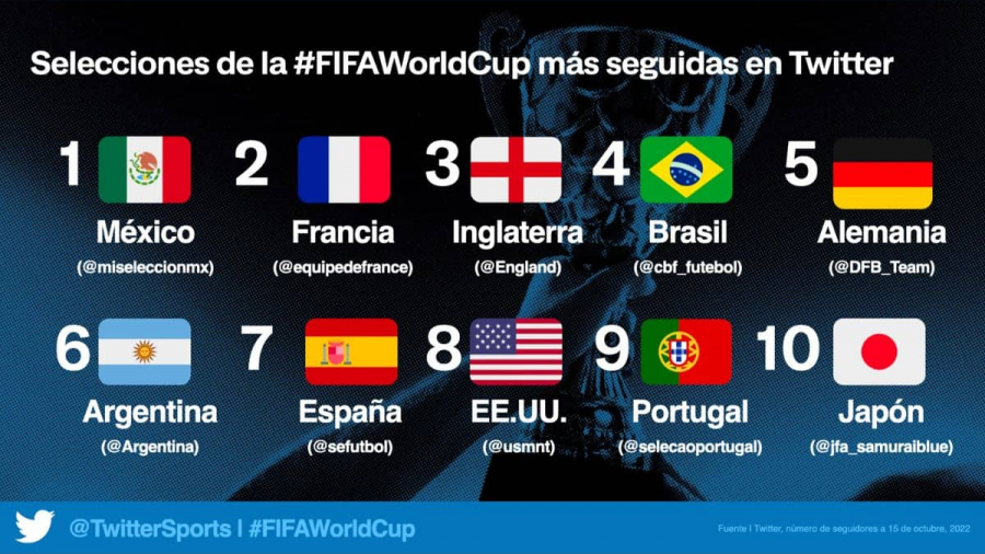 “Con el Mundial de Qatar a la vuelta de la esquina, las conversaciones sobre fútbol en Twitter se están disparando y conforme llegue el momento del juego, el rugido de los aficionados de todo el mundo se dejará sentir aún más. Aunque las jugadas más épicas tendrán lugar en el campo, el partido cobra vida en Twitter. El Mundial será uno de los acontecimientos deportivos más importantes del año, así que para todos aquellos aficionados que quieran conectar con los grandes momentos de la competición, Twitter será el lugar donde conectar”.